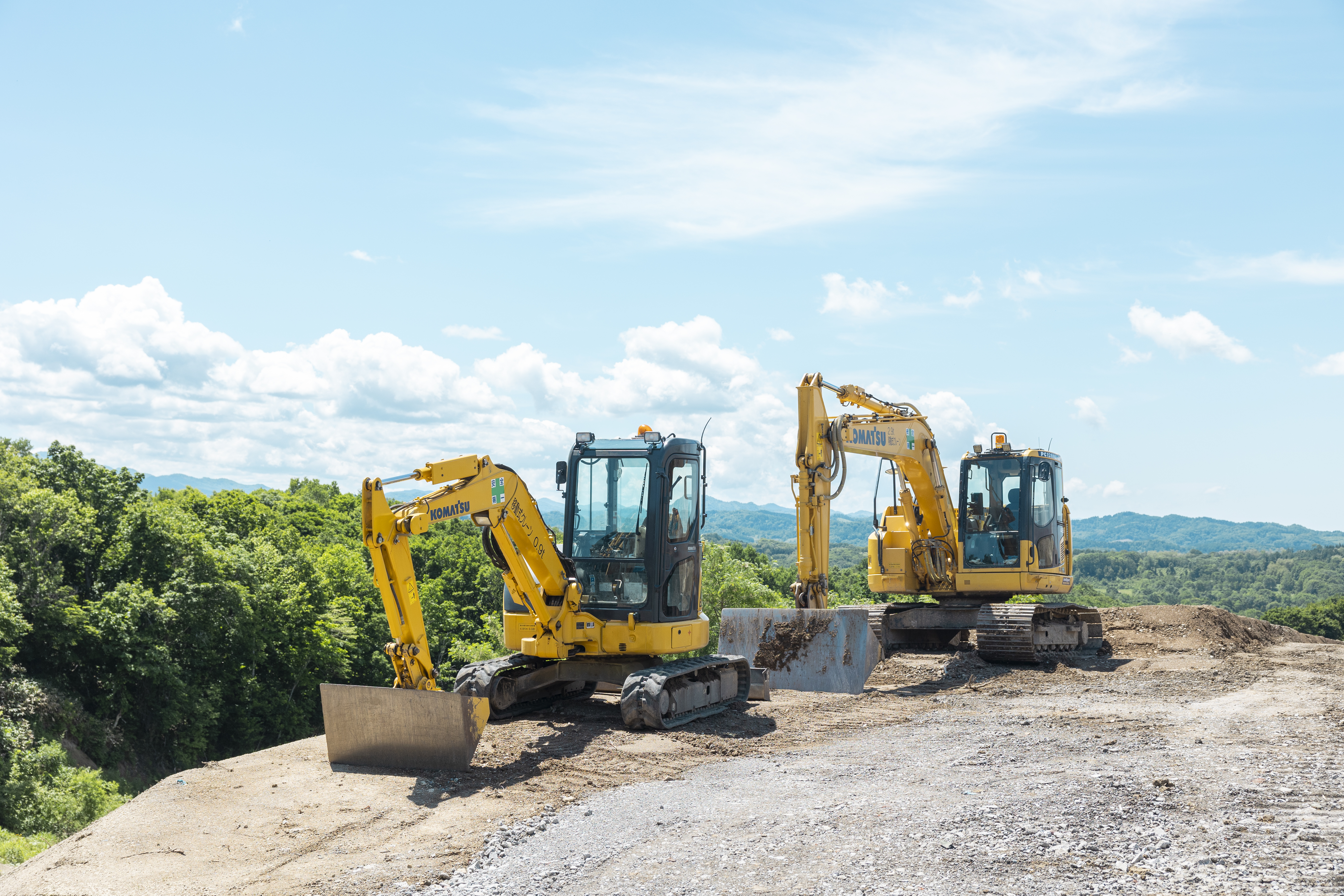 ブルドーザー、バックホウなど土木建設に欠かせない建設機械を多数保有。ICTに対応した最新建設機械も増車中です。