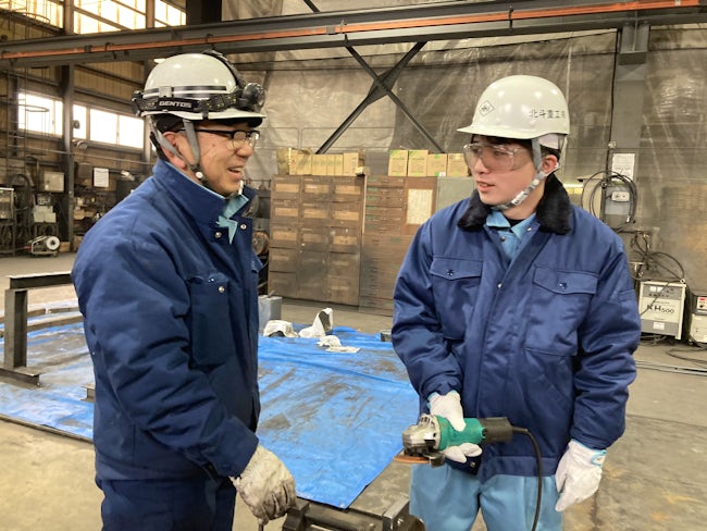入社後は余っている材料で溶接の練習をさせてくれ、出来上がったものを上司に見せてアドバイスをもらう日々。