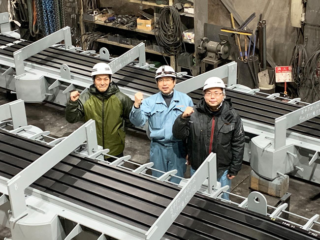 入社後は、ひたすら材料に触れ、溶接の基本を学びながら、鉄工の知識を身につけました。現在は伸縮装置の組み立てを担当し、ミリ単位の精度が求められる仕事に日々向き合っています。