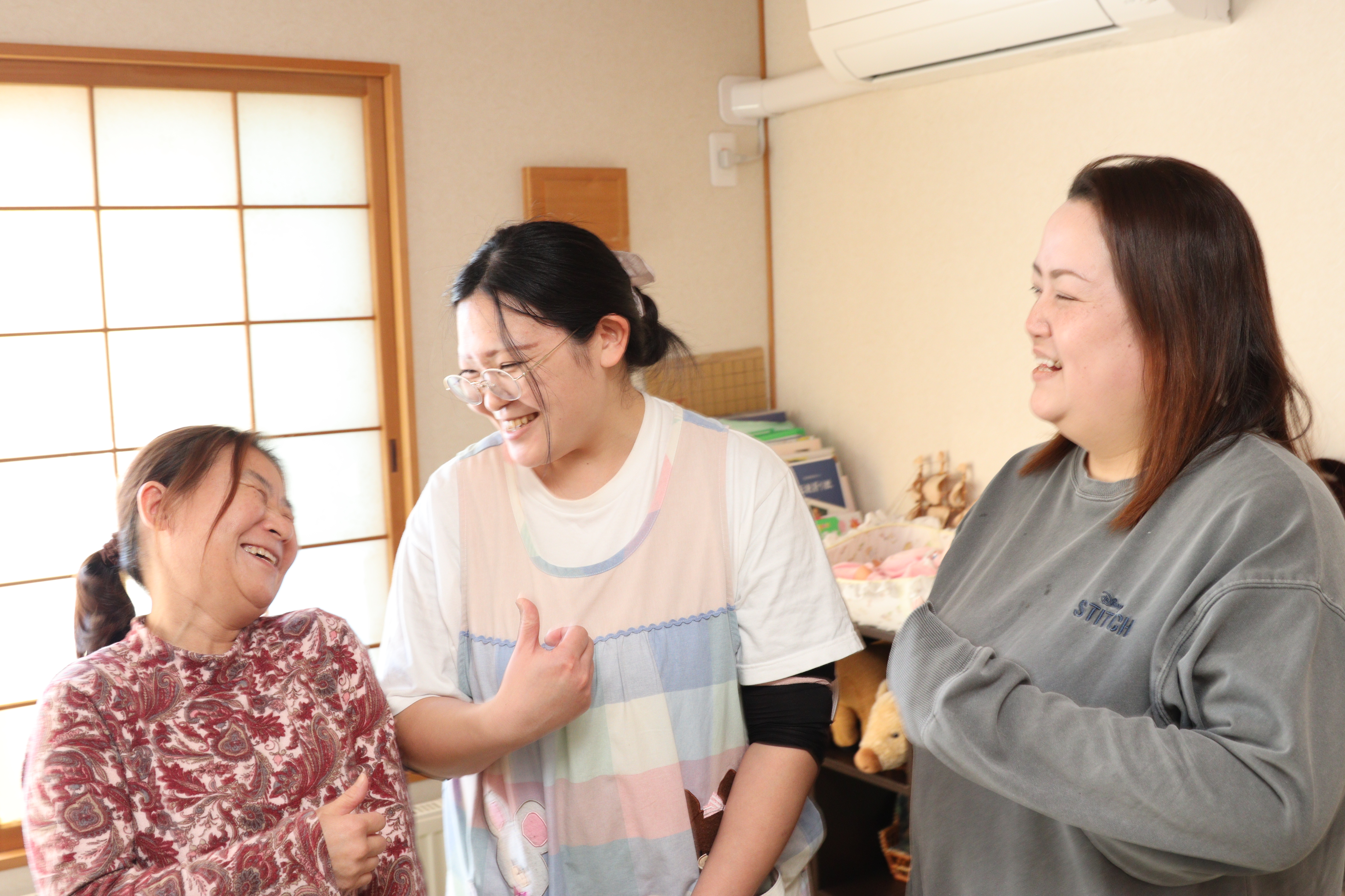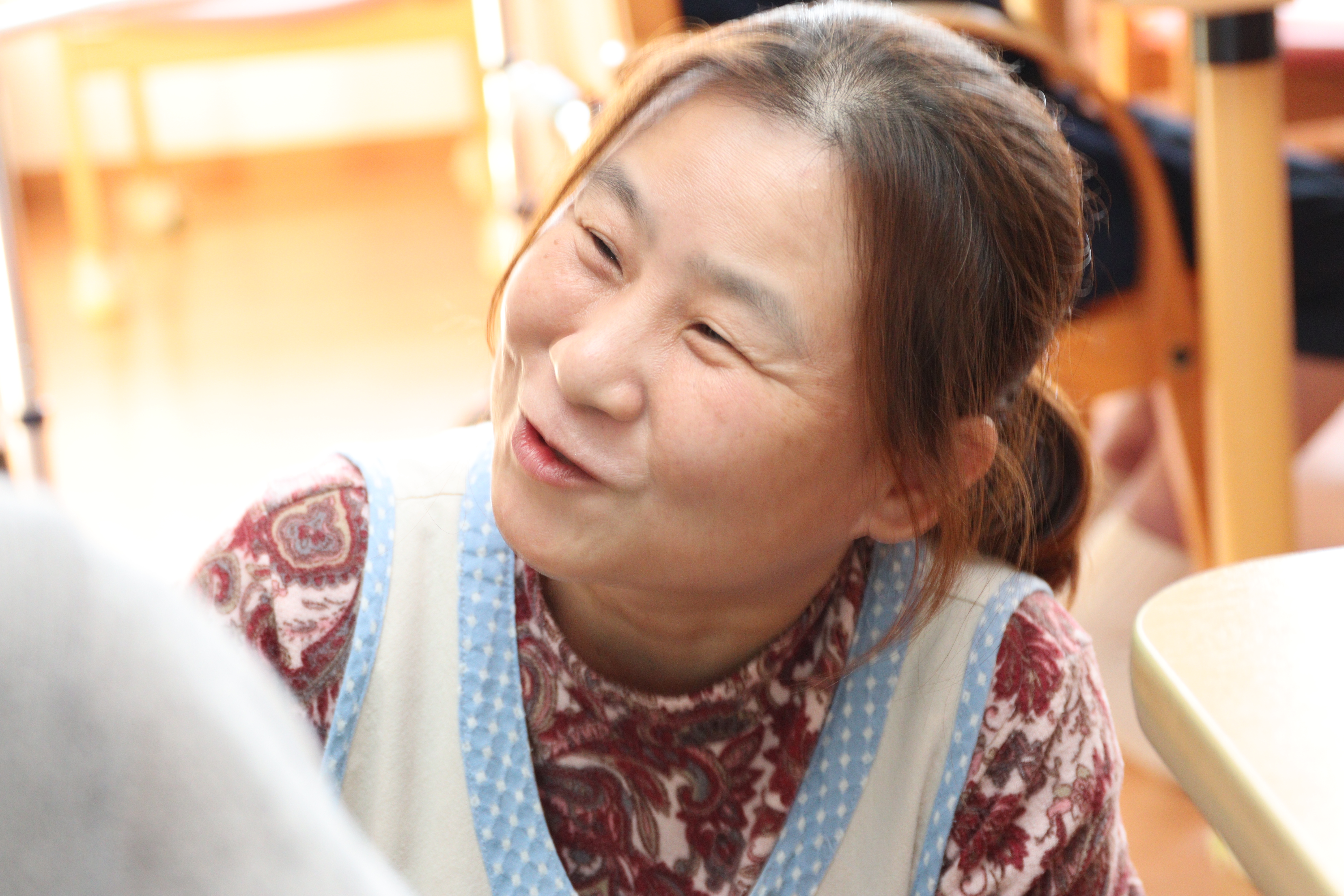 私は以前、大規模な施設で補助的な仕事をしていましたが、のどかに来てから働き方が大きく変わりました。私には目に見えない障害があり、電話対応や数字の管理など苦手なこともあります。でも、ここでは理事長や仲間がそれを理解し、私が得意な「利用者様と関わること」をメインに任せてくれています。