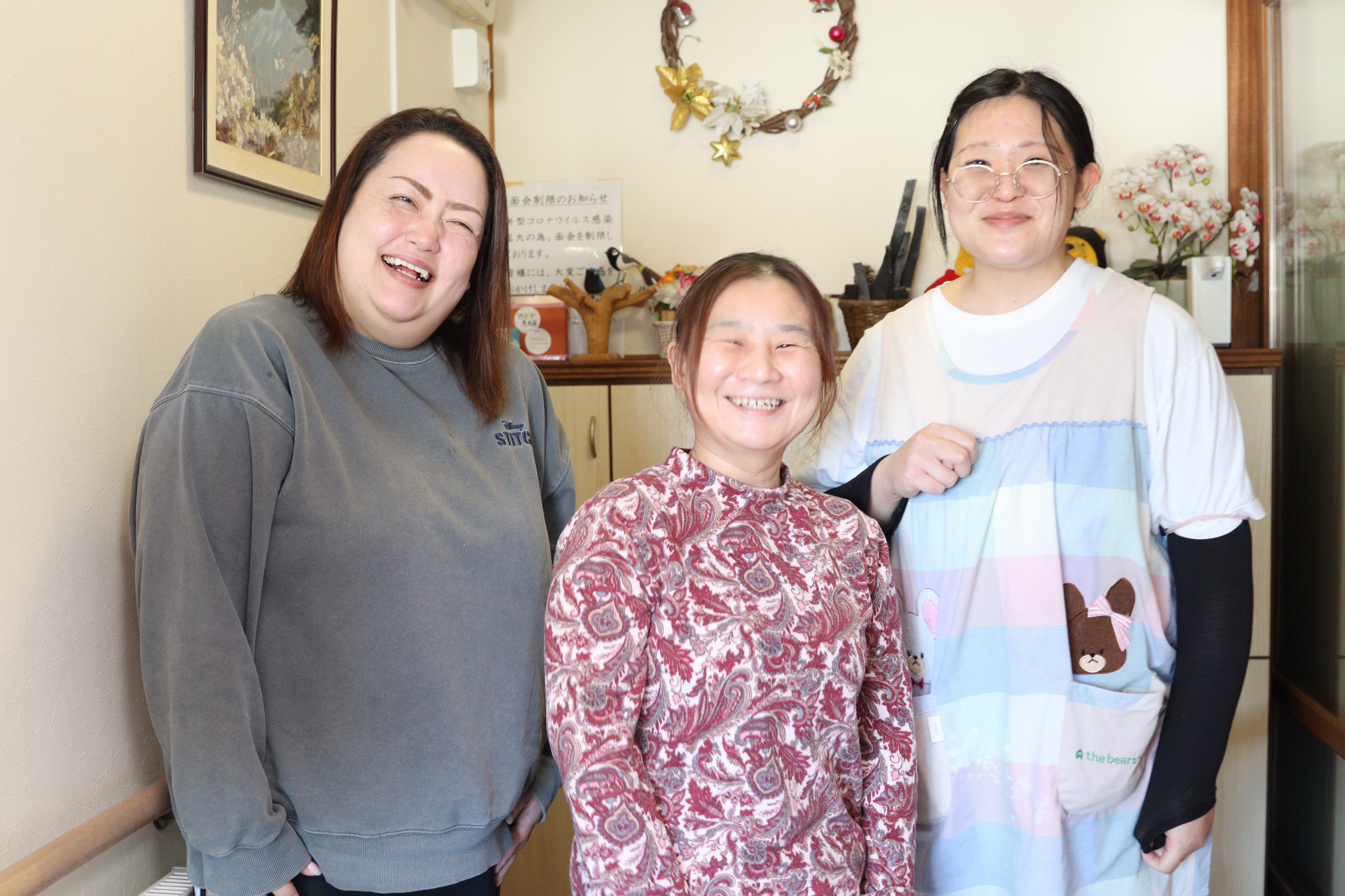 現在は10年、15年と続くベテランも多く、定着率は自慢のひとつ。今後は、休みをもっと増やせる体制づくりや、多様な背景を持つ方が働ける環境整備を進めています。介護技術は後からついてきます。「人が好き」というあなたの優しさを、ぜひここで活かしてください。