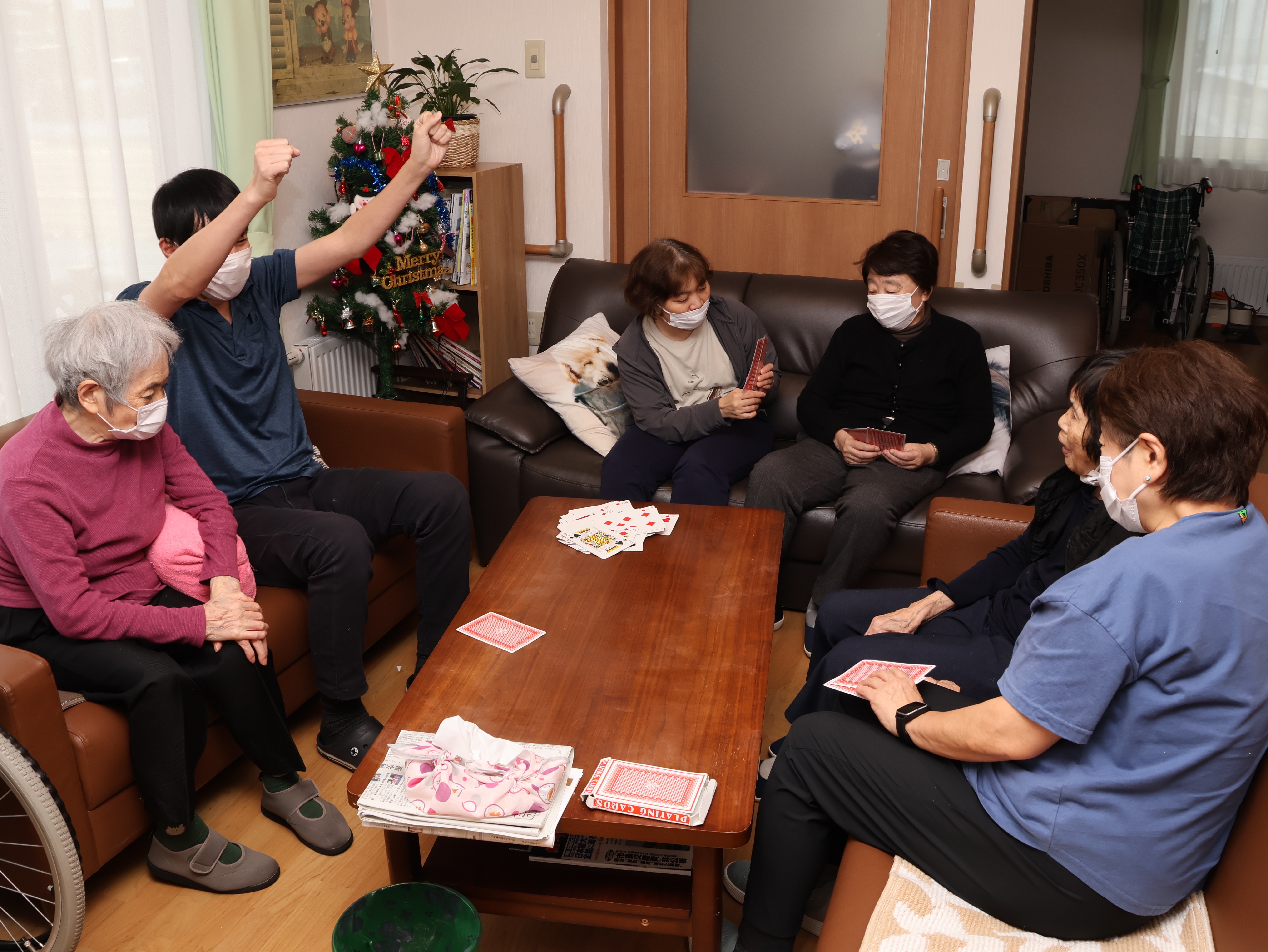 今のやりがいは、利用者様とのコミュニケーションです。誕生会をみんなで祝ったり、私がTikTokで見つけて企画した簡単なゲームで盛り上がったりする瞬間は、とても嬉しいです。「若い頃は何をしていたんですか?」と質問すると、面白い昔話を思い出して聞かせてくれて、みんなで大笑いすることも。利用者様同士も仲が良く、施設全体が温かい雰囲気に包まれています。