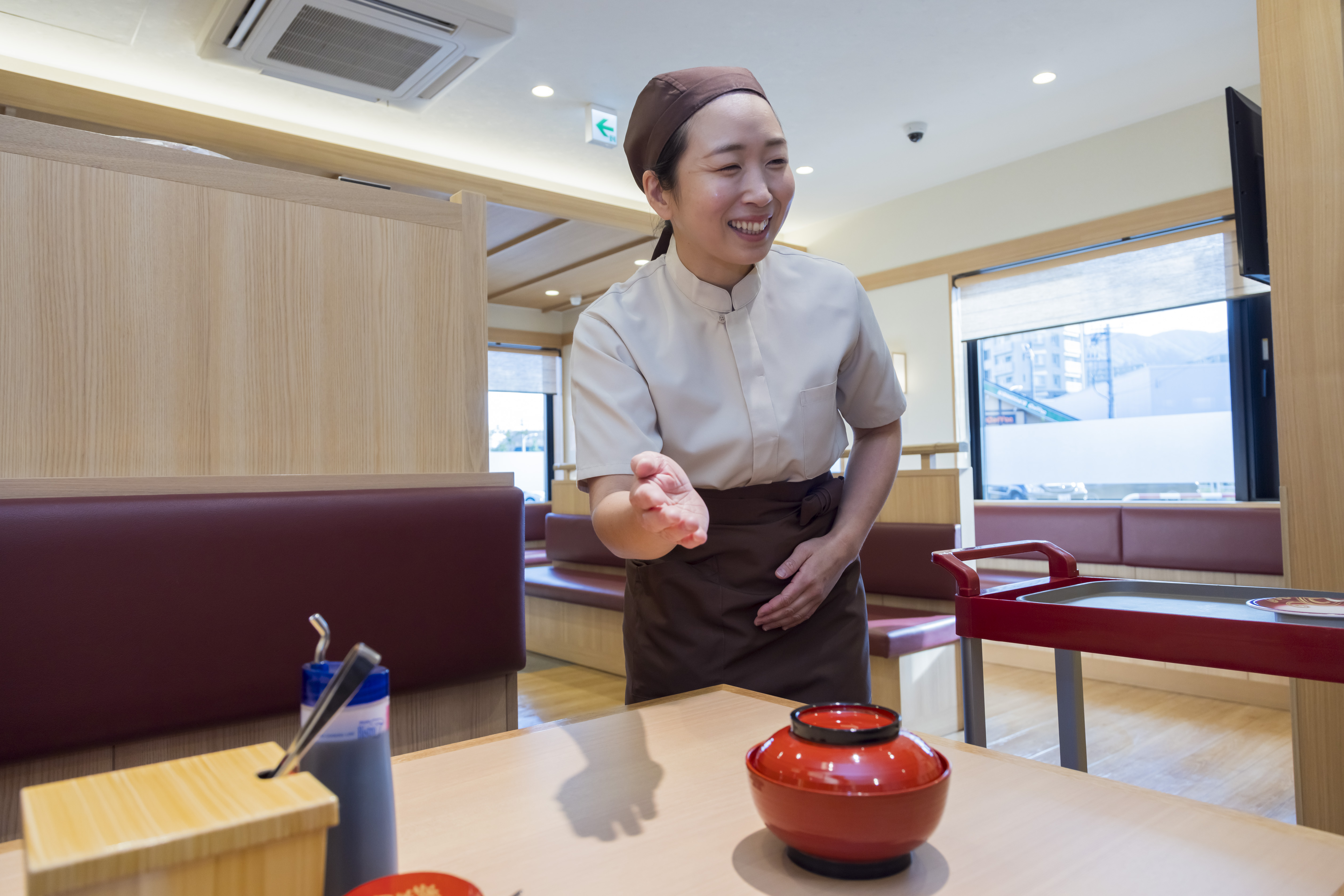 お客様のご案内・汁物やドリンクの商品提供