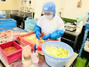 トレーに野菜を詰めていく作業、調味液を入れる、袋に入れて真空を行う仕事です。2〜5人でその時の出荷個数に応じて業務調整を行っています