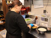 (麺を茹でる、トッピングの盛り付け、サイドメニューの盛り付け。メニューごとに作業はわかりやすく整理されているので、流れを覚えれば難しいことはありません。)