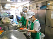 調理スタッフは1施設につき、約3〜15名程のスタッフで協力し、 「安心・安全な食の提供」の為に作業を行っております。