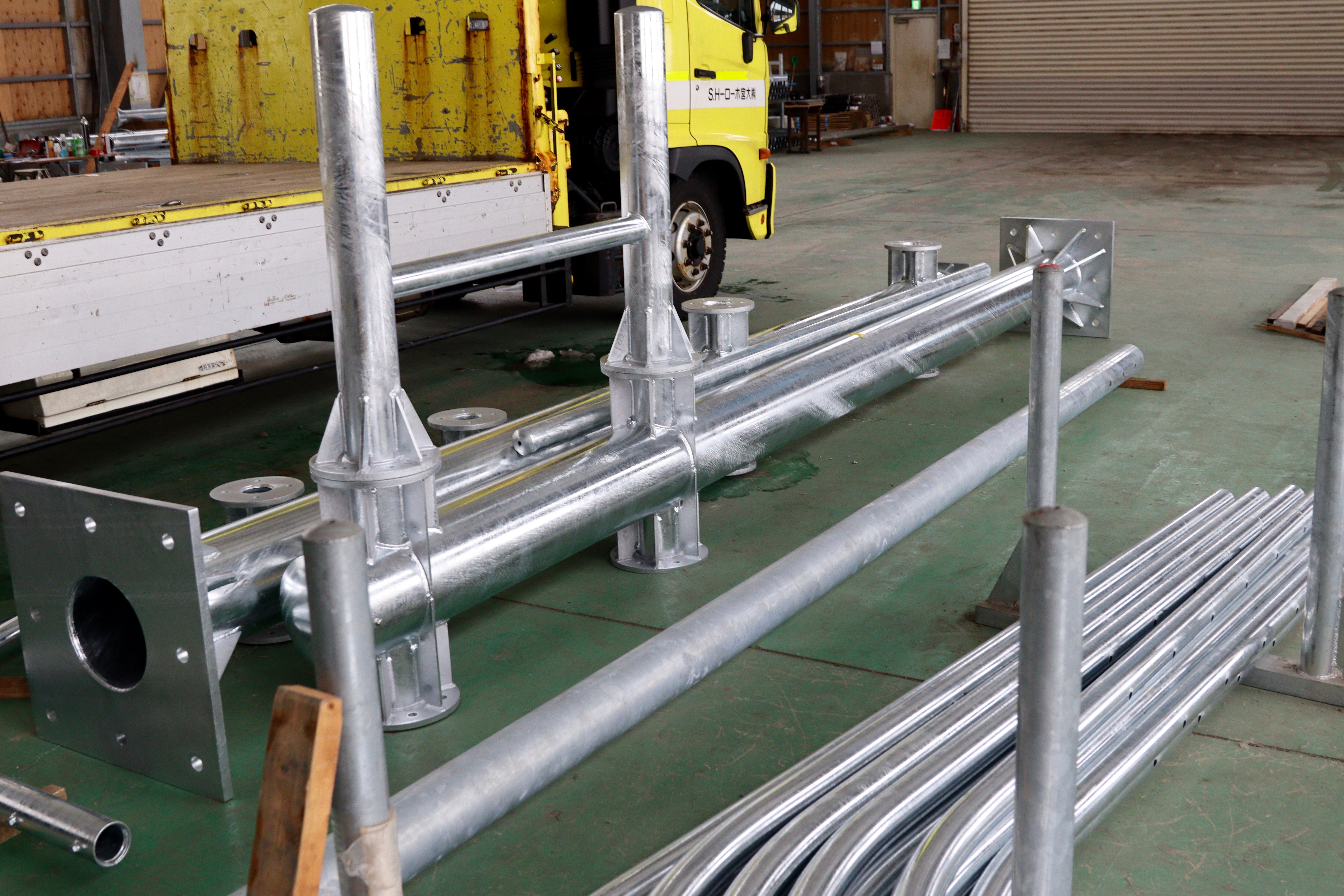 道路標識板や標識柱の工場内製造業務を担当します。