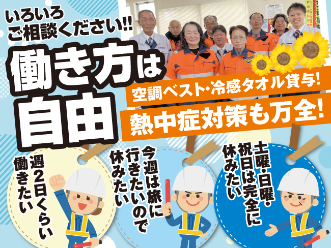 ・熱中症対策のため空調ベスト・冷感タオル貸与!