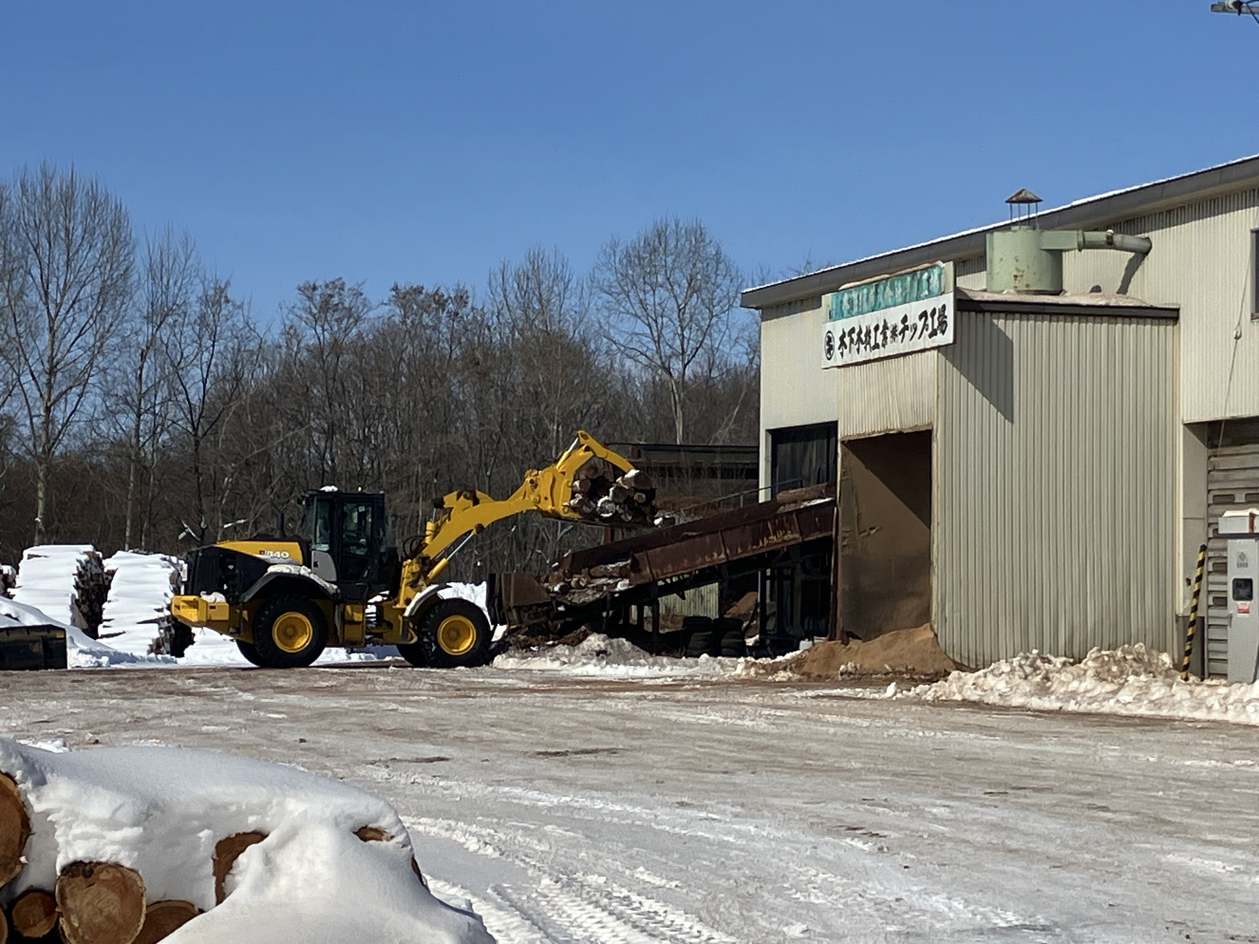- 木材チップ工場にて、重機を用いた以下の作業です。