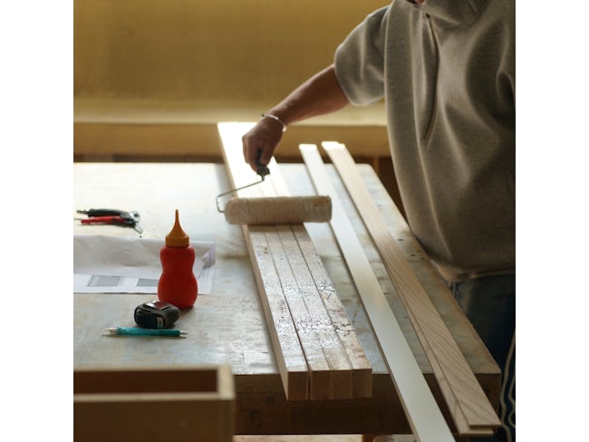 床掃除や研磨、仕上げ(オイルを塗る等)、合板(板と板をボンドでくっつける)、梱包作業等。