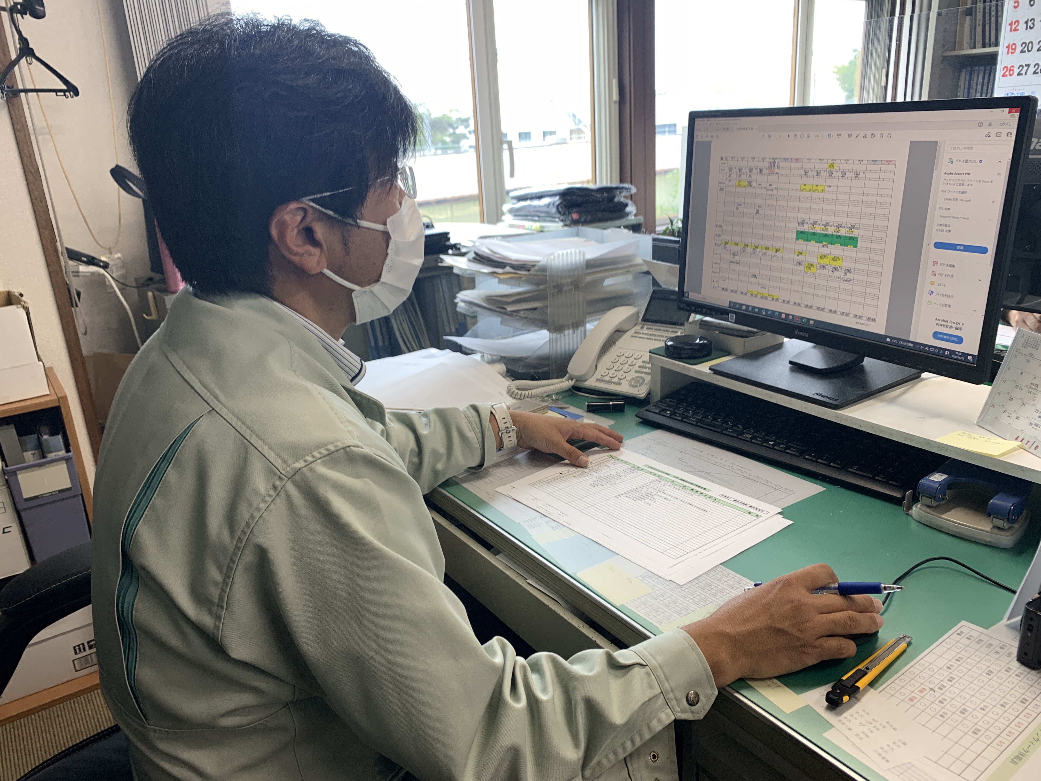 基本はデスクワークのお仕事です。もちろんお得意先への訪問や現地の確認などもありますが、電話での業務やPCを使っての書類作成も多いです。