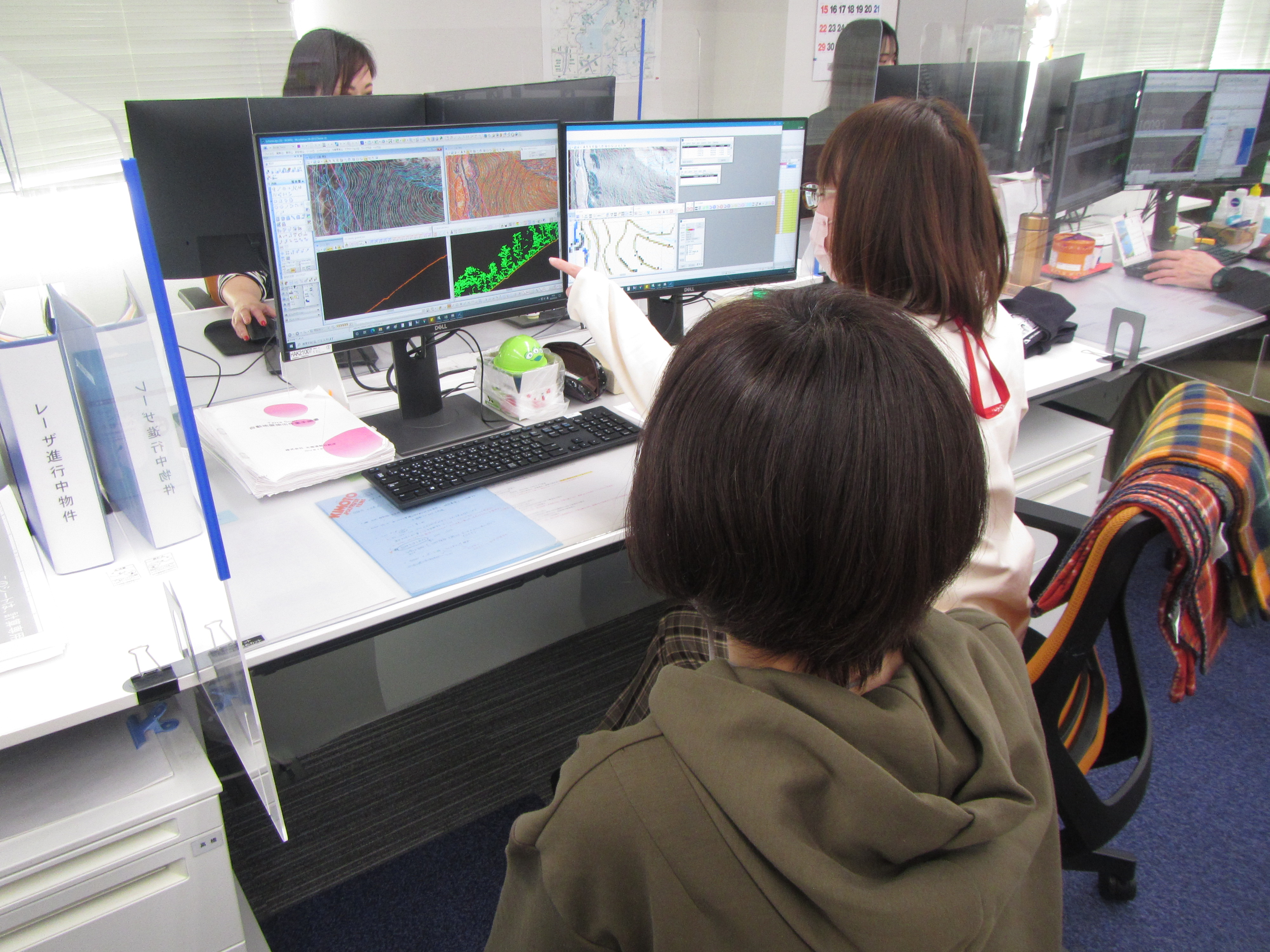 近くには常に社員が多数おりますので、わからないことがあれば、その場ですぐに聞けるフォロー体制です。