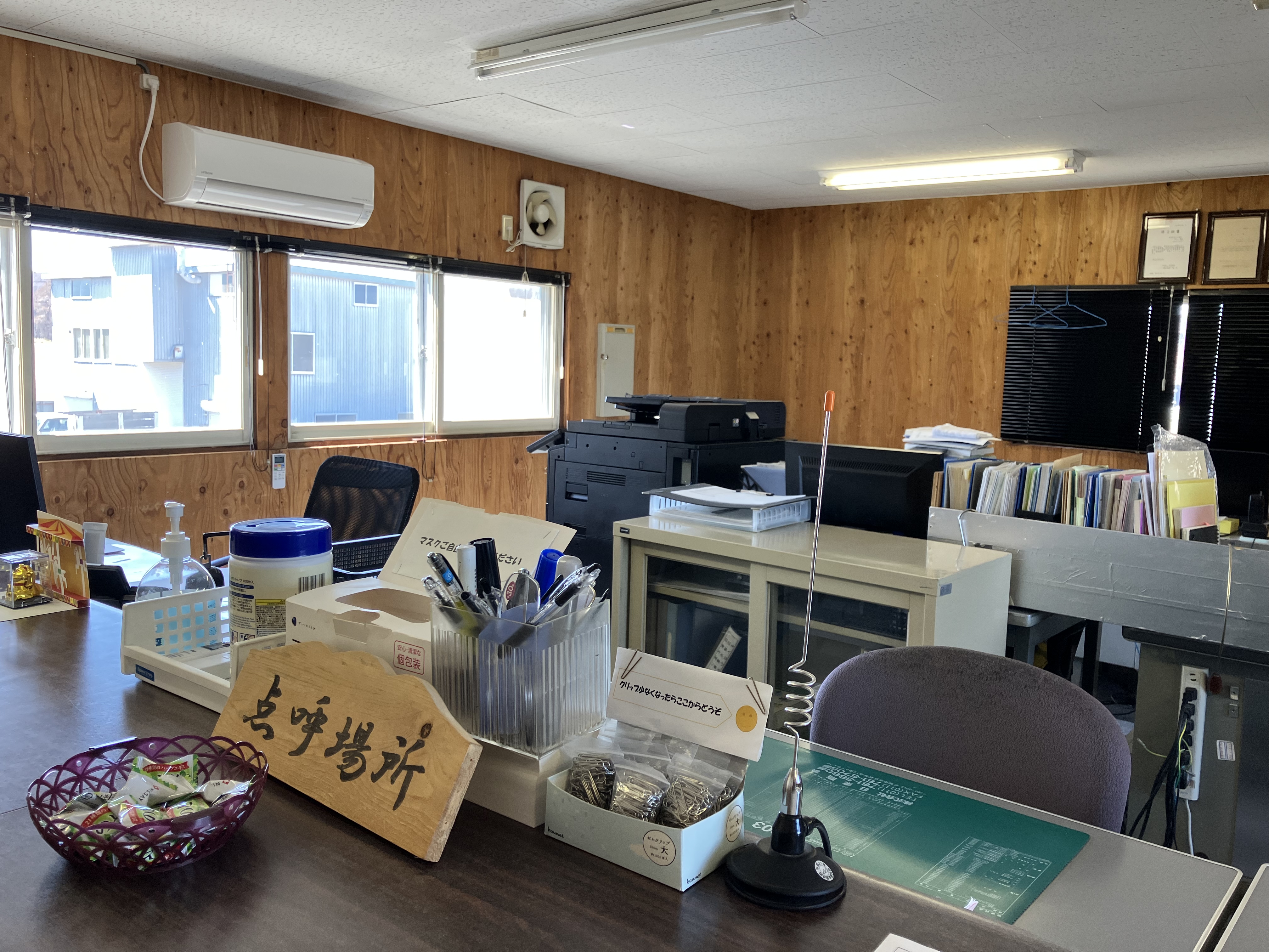 点呼場所にはドライバーをいたわるアメが用意されていました。とても穏やかで優しい社長と事務員さんの気遣いが溢れています。