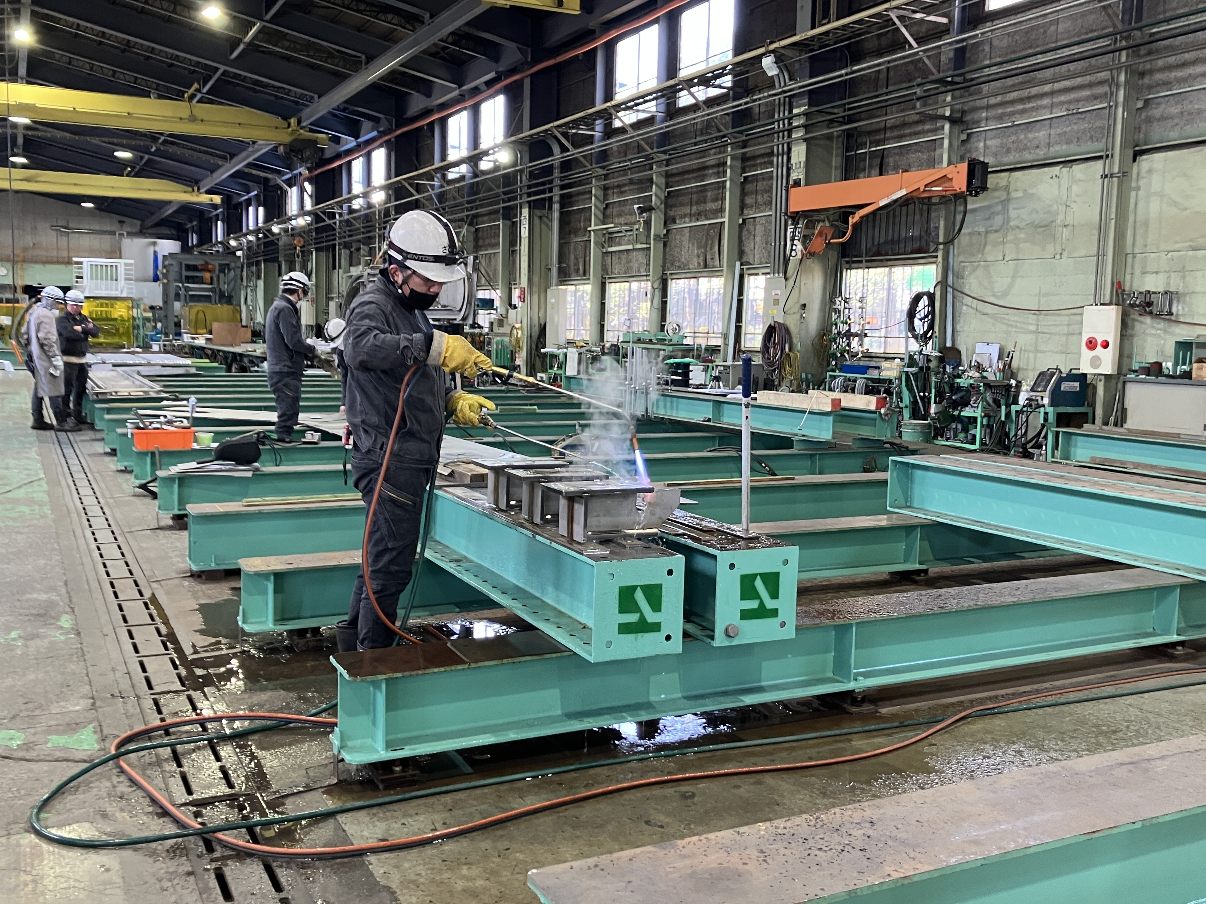 水門部品製造の工場内作業