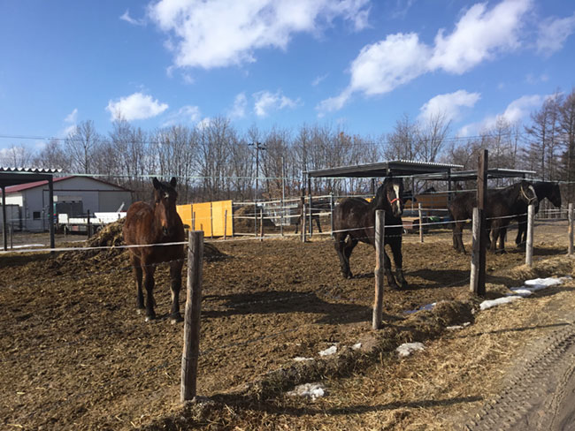 ばんえい馬を80頭程育成している上士幌の牧場。