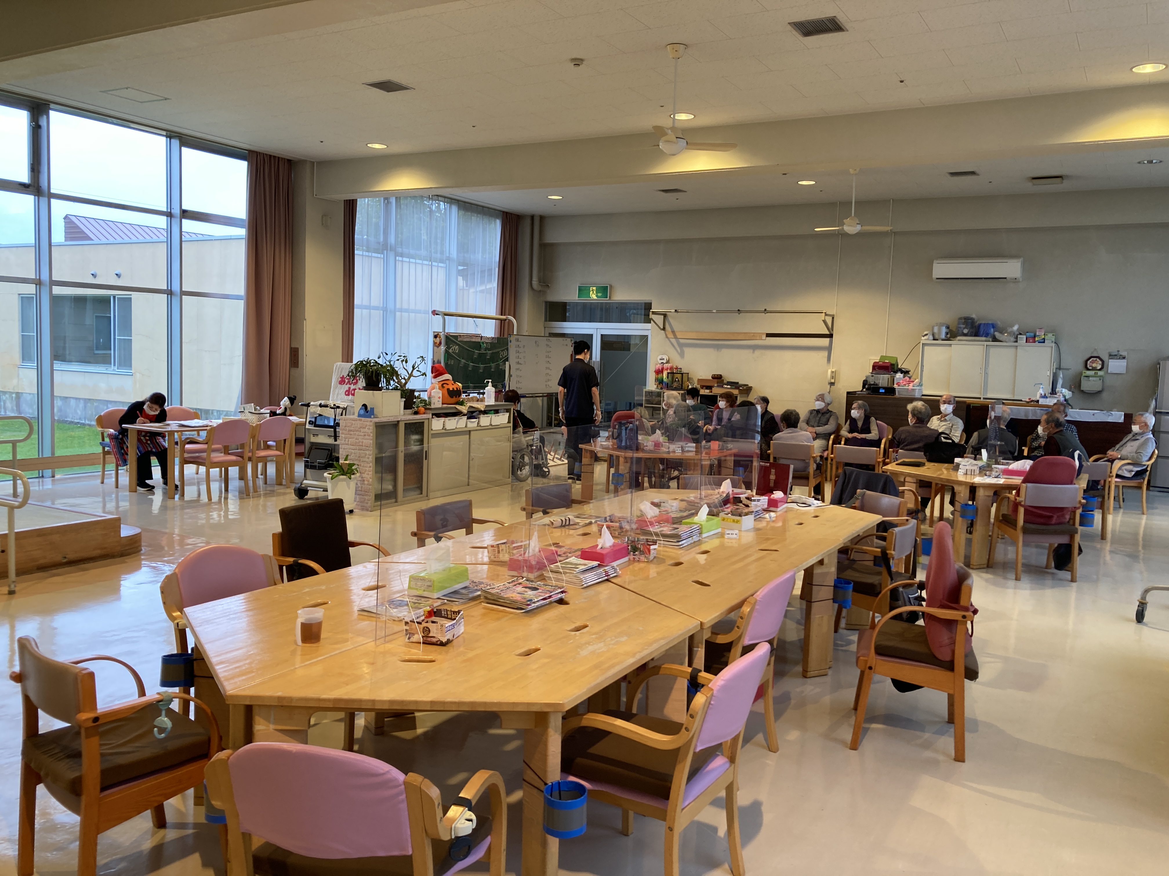 隣接する特養を含めると、40〜70代までのスタッフ44名が在籍しており、男女比は男性6:女性4。