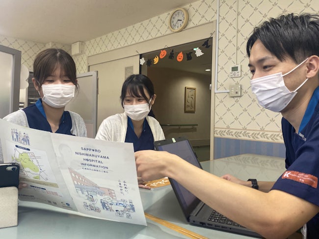 事務といっても机の仕事だけではありません。病院内での企画室スタッフはデータ分析や文書作成だけではなく、広報や病院をより良くするための新しい取り組みの企画・提案などさまざまな活躍の場面があります。