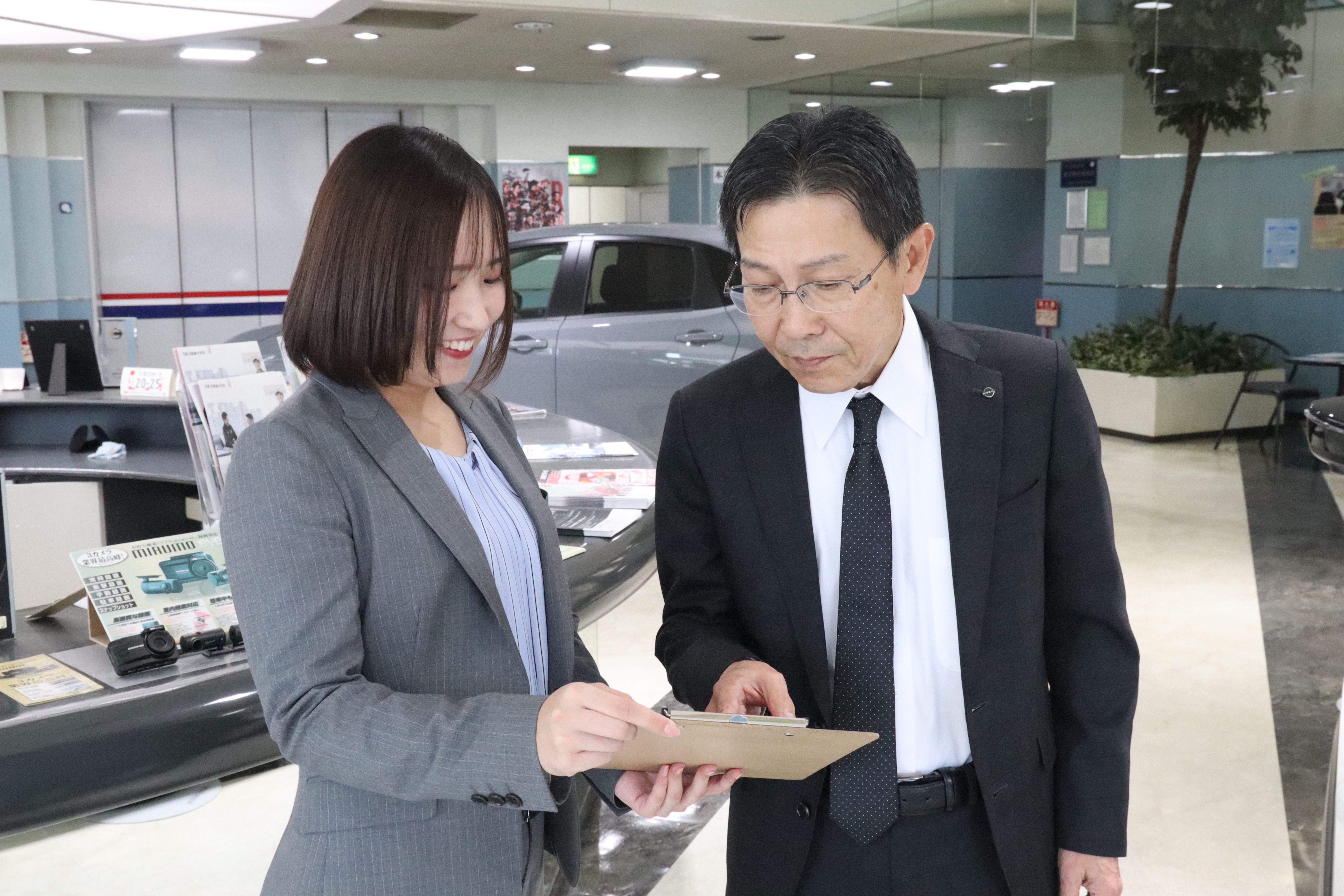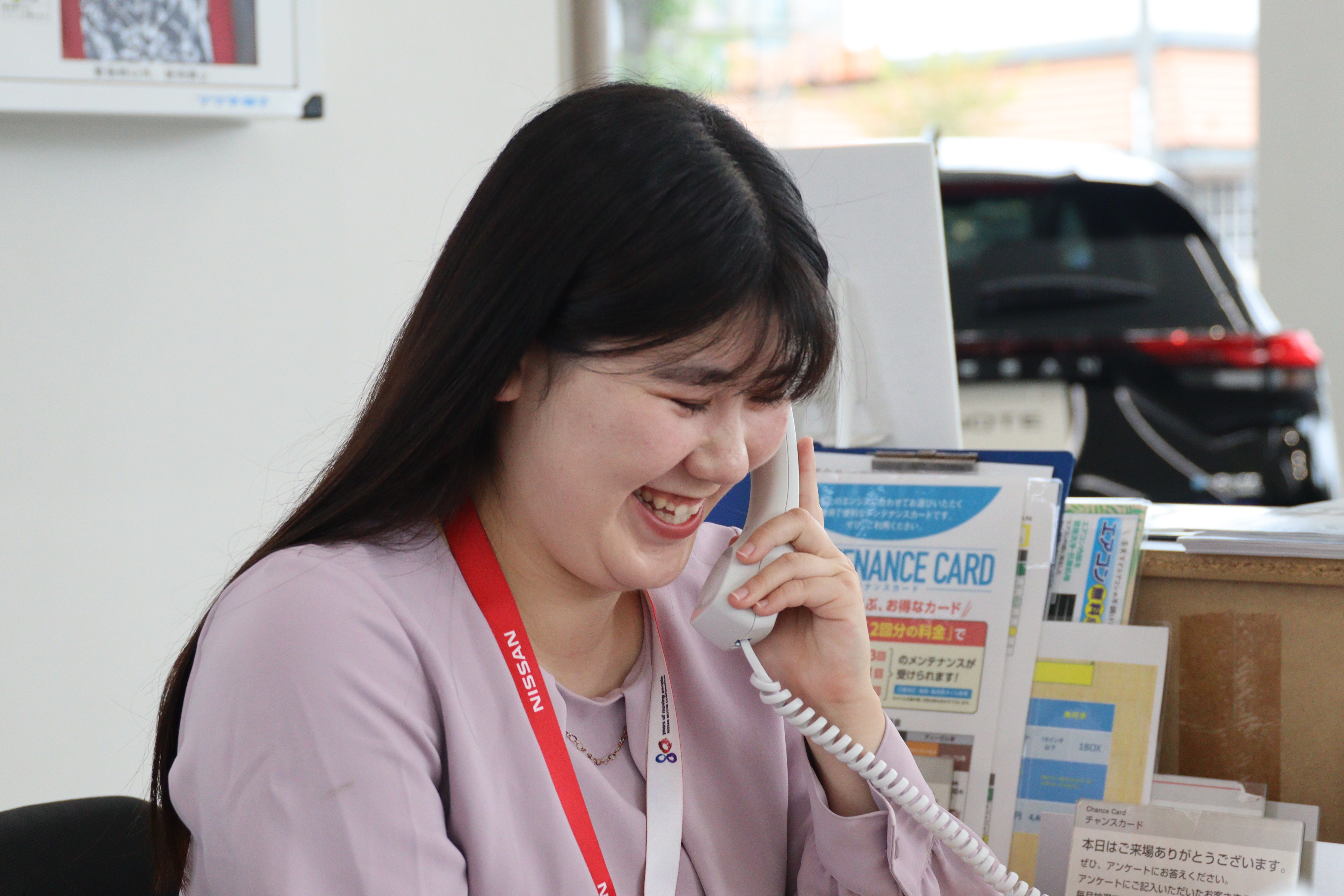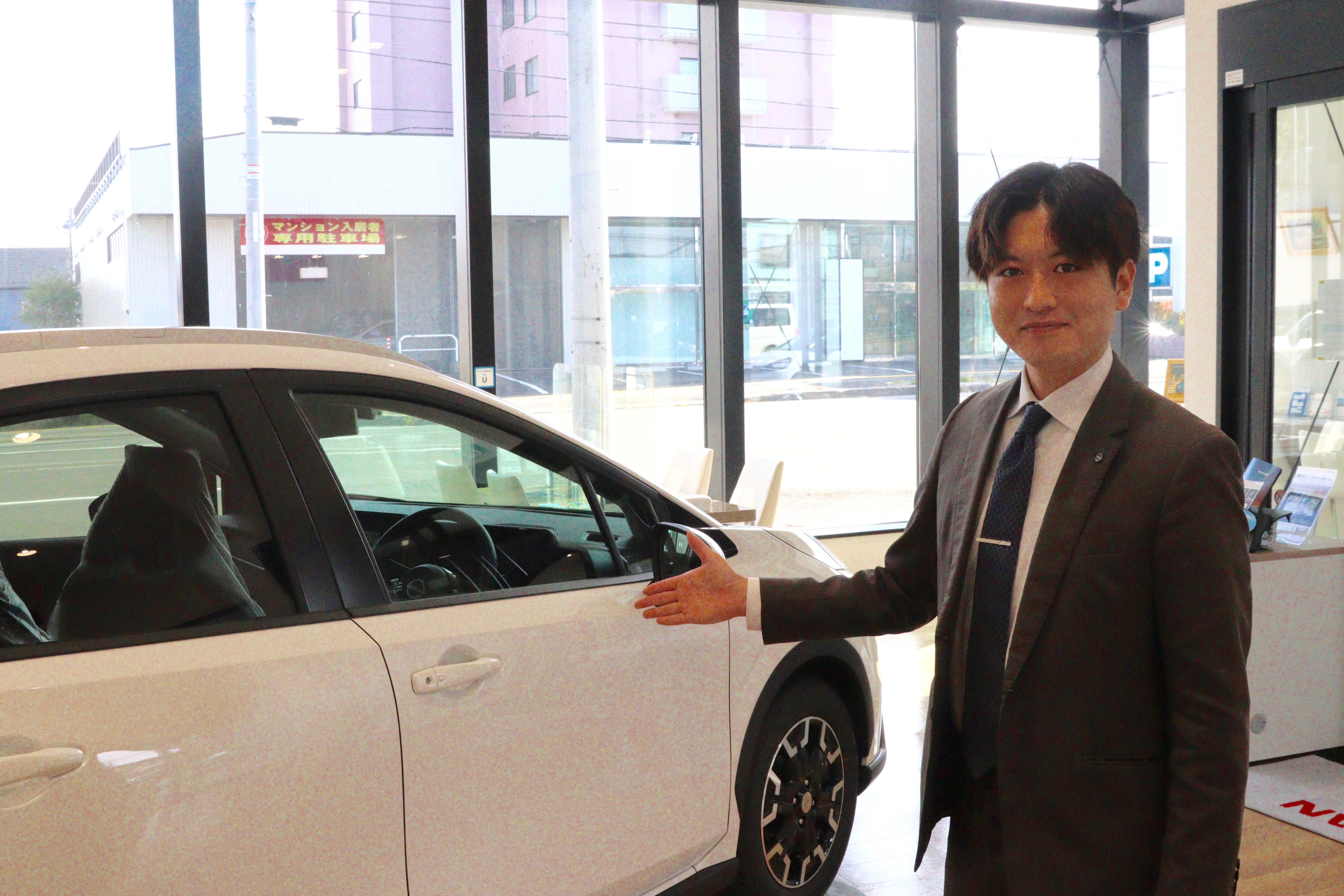 「車が大好きで詳しかった」というわけではなく、「接客に携わりたい、営業をやってみたい」その気持ちひとつで入社しました。車の知識が事前にないと難しそうと思うかもしれませんが、知識ゼロでも全く問題ありません!自分が扱う車だけわかっていれば大丈夫。日々の業務を通して自然と覚えていけると思います。