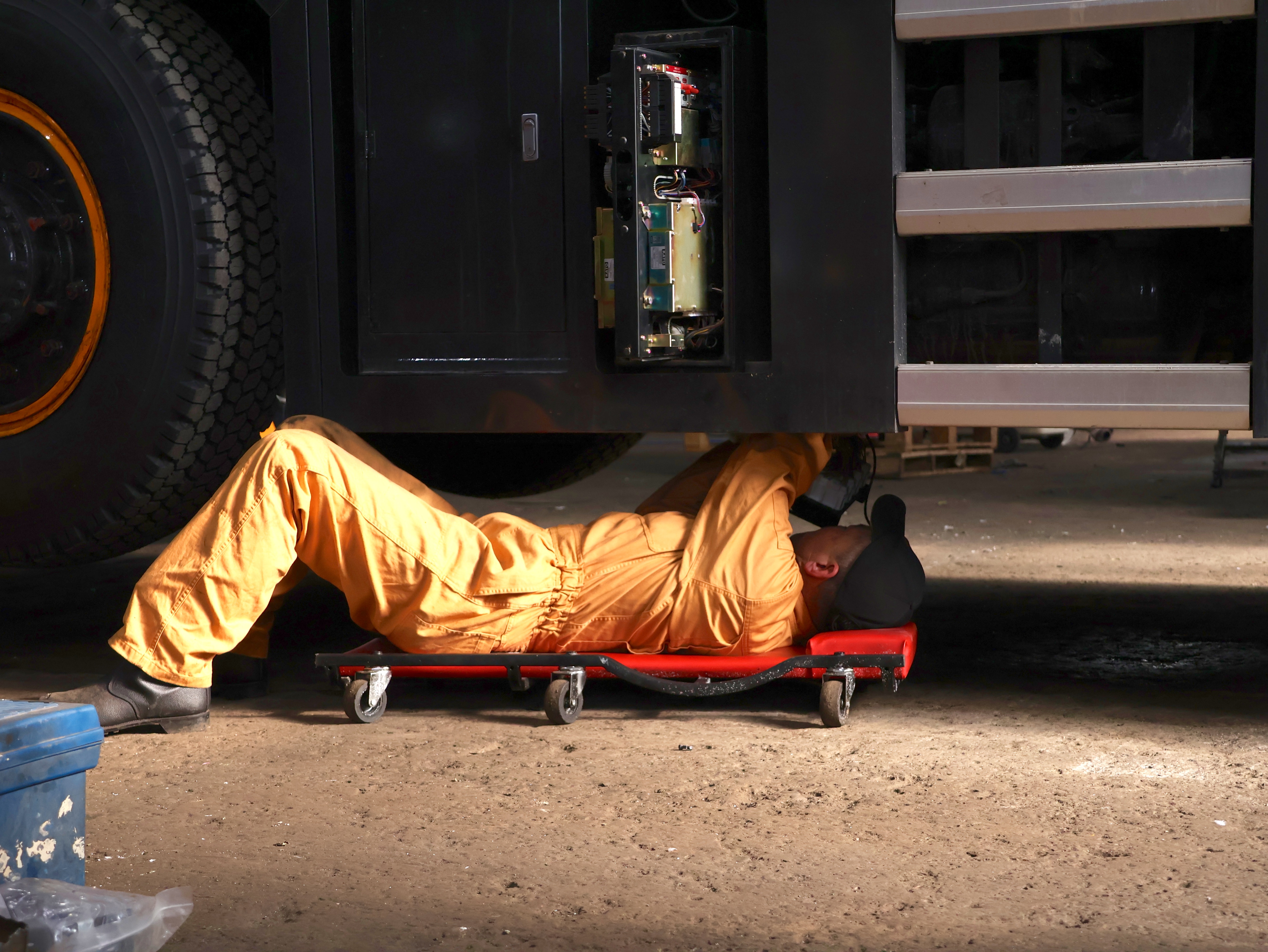 整備士の仕事も、まずは簡単な点検から。