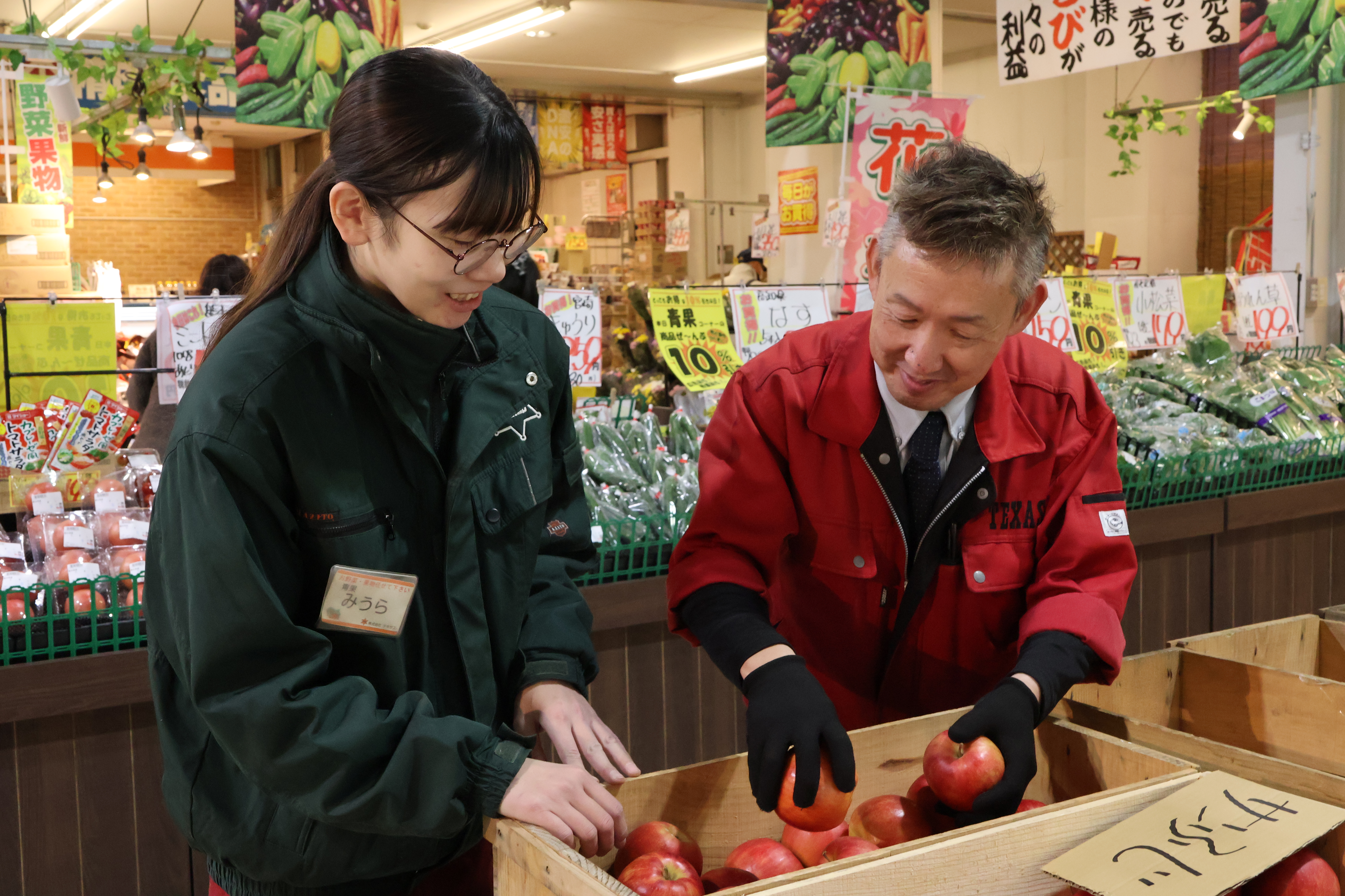 市場の方と信頼関係を築くことも大切な業務の一つ。スーパーの仕事って実は奥が深いんです。