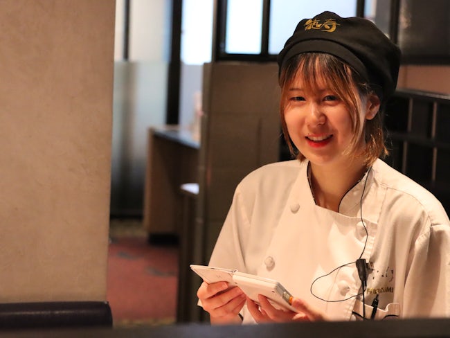 「最初は接客やテーブルの片付けから」と無理なくスタートできるので、飲食未経験でも安心です。