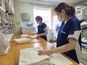 病院内での洗濯作業スタッフ