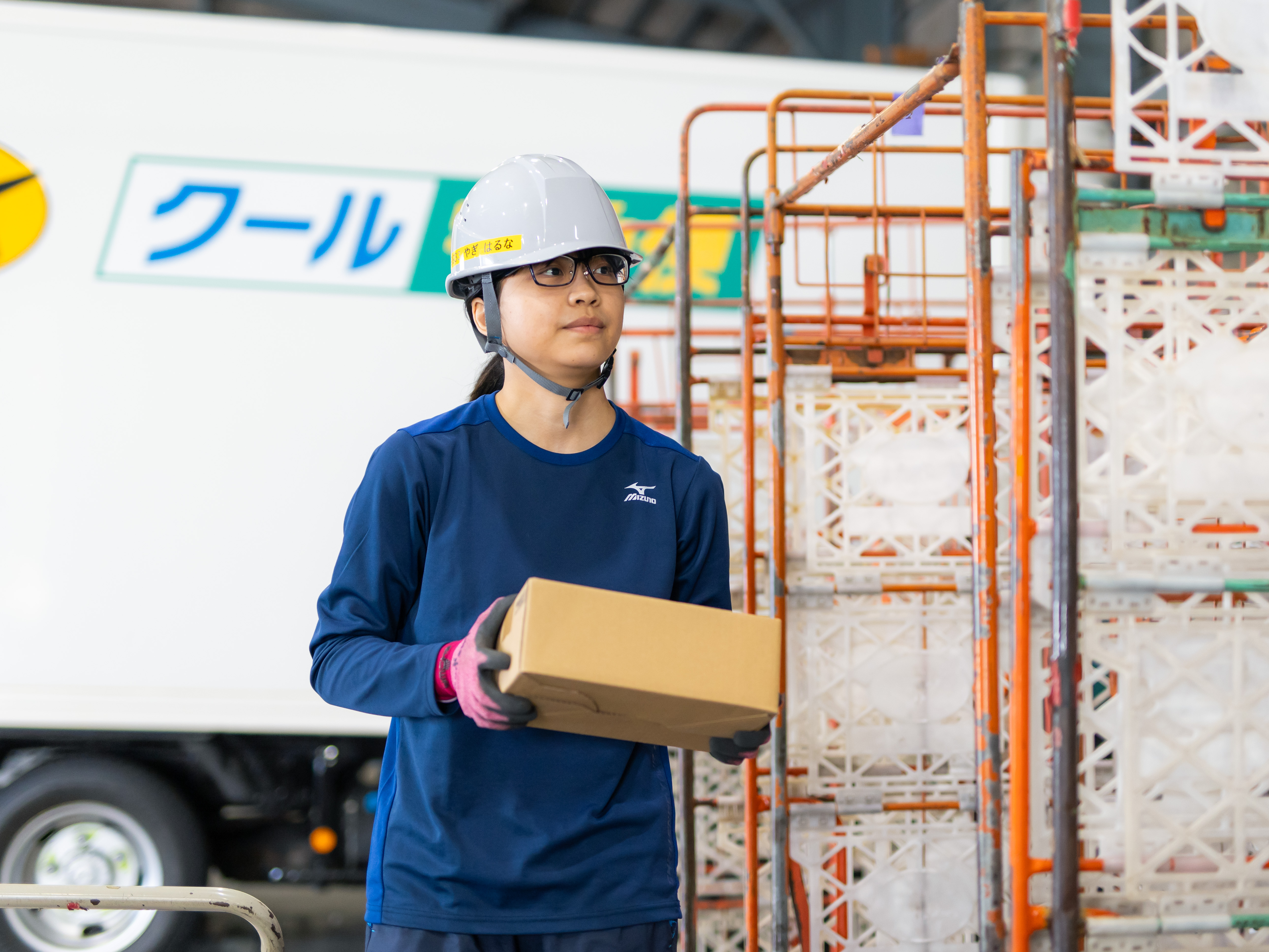 私は朝9時から14時まで構内作業を担当しています。早朝アシスタントさんたちの積み込みが終わった構内を片付けたり、新たにお客様からお預かりした荷物を仕分けたりするのが仕事。
