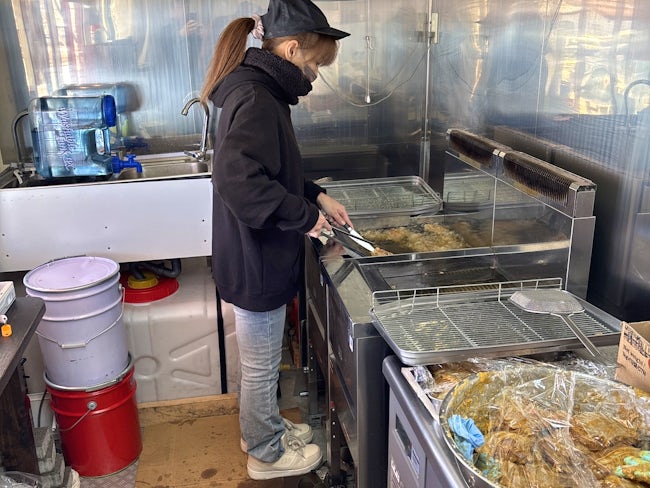 店頭では注文が入ったらキッチンカー内で揚げ作業を行い、お客様へ販売します。基本的に1名体制での業務のため、気兼ねなく働きやすい環境です。