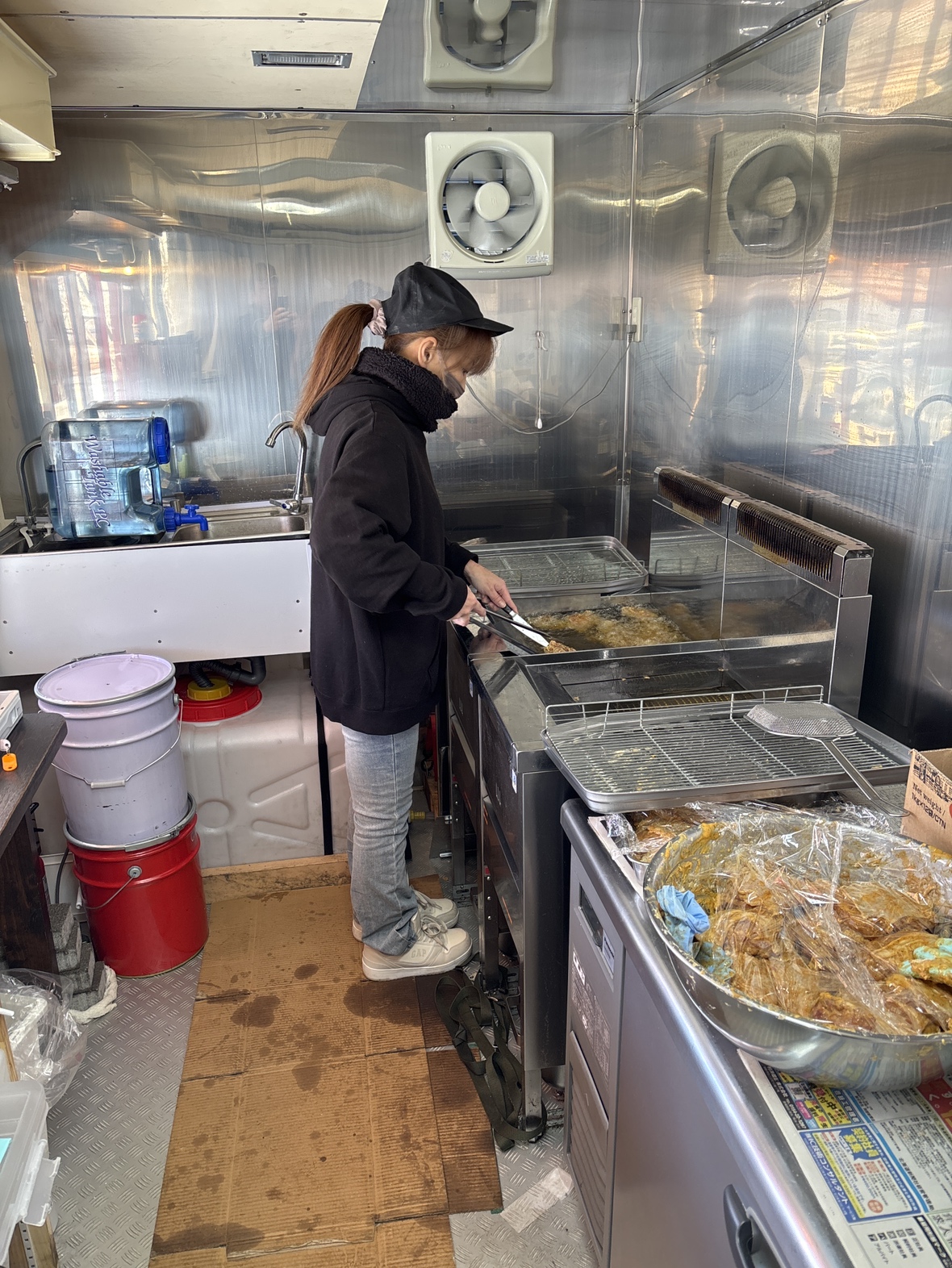 店頭では注文が入ったらキッチンカー内で揚げ作業を行い、お客様へ販売します。基本的に1名体制での業務のため、気兼ねなく働きやすい環境です。