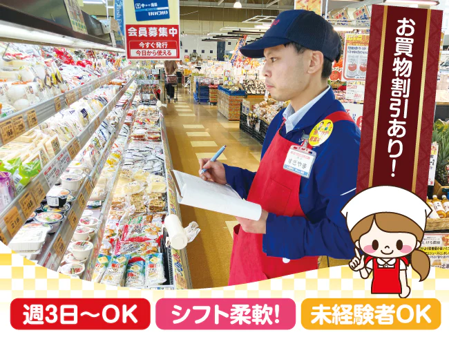 ★お買物5%割引の従業員割引特典あり!勤務後にそのままお買い物ができるので、とっても便利でお財布にも優しい!★GW明けからの応募・勤務開始もOK!