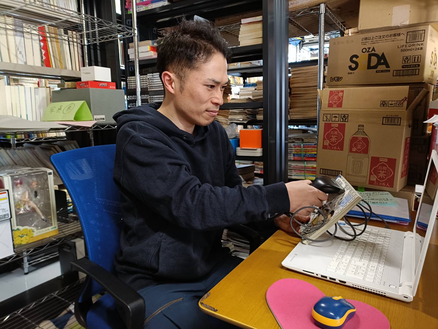 - ネットショップで売れた商品の梱包作業や、商品化における査定・検品・入力作業のお仕事です。専門知識は不要です。接客、電話対応、残業はありません。メイン商材は中古品の本です。
