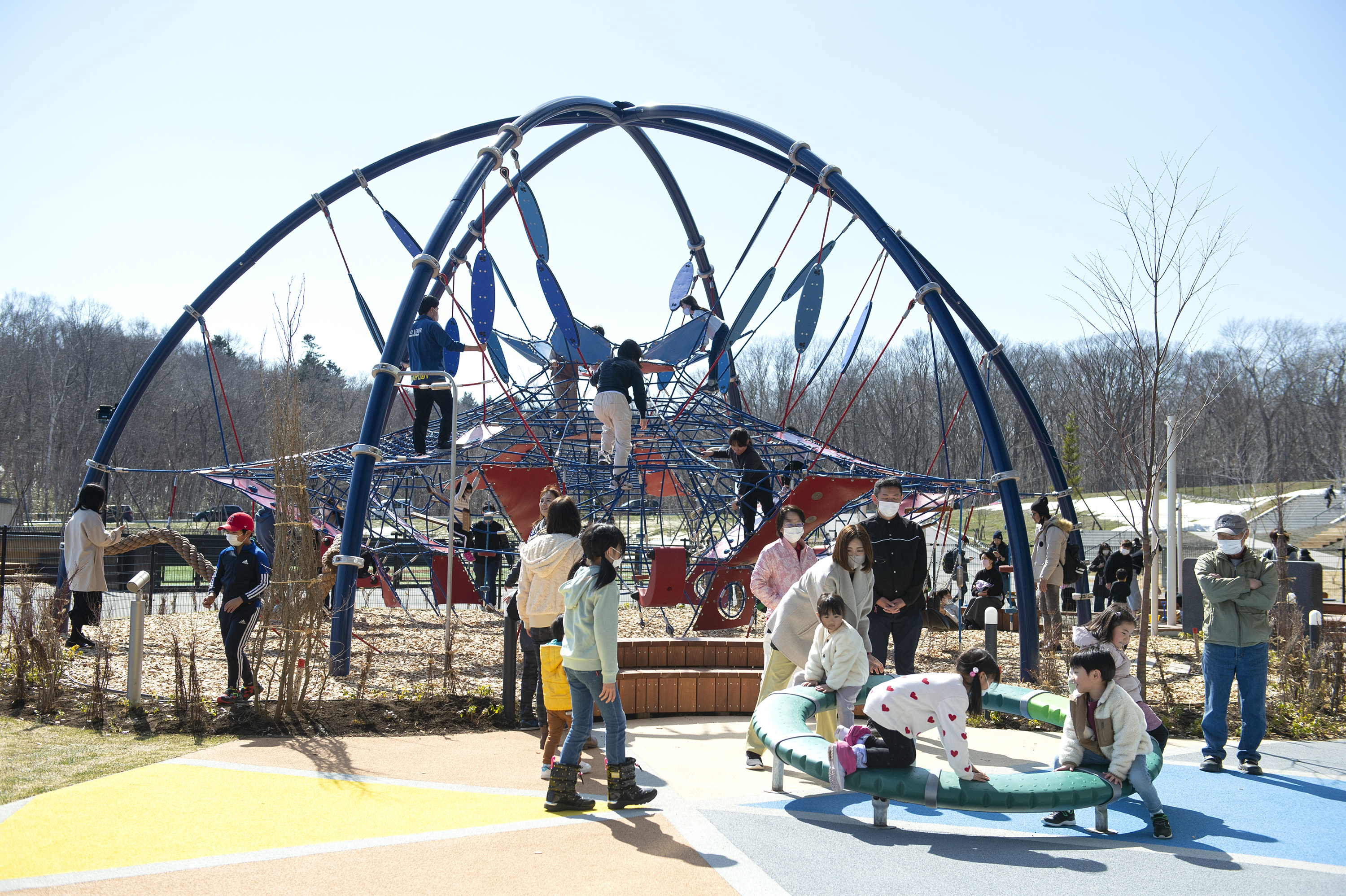 リサイクル素材を使用してつくられた環境に配慮した遊具や、日本ではじめて導入する、ヨーロッパ製の木製のお城「ロビニアキャッスル」など世界最新の遊具で、五感を刺激するしかけから力を試すあそびまで、年齢ごとの「やってみたい」に応える、多様なあそびをご用意します。