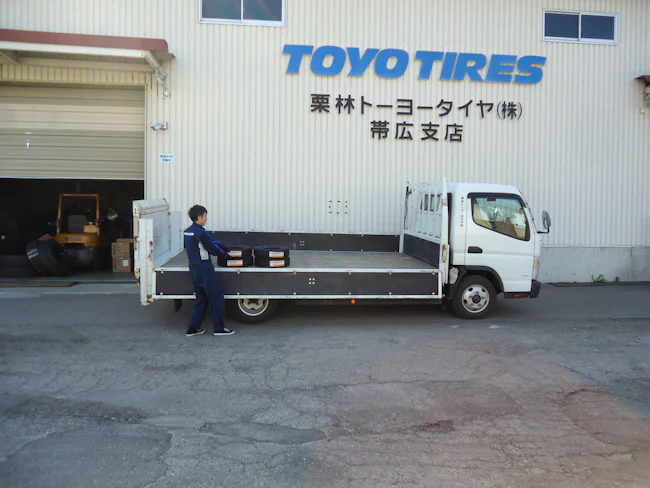 - メーカーから入庫されるタイヤやホイール等の商品を既存のお客様(法人)へ配送する業務です。