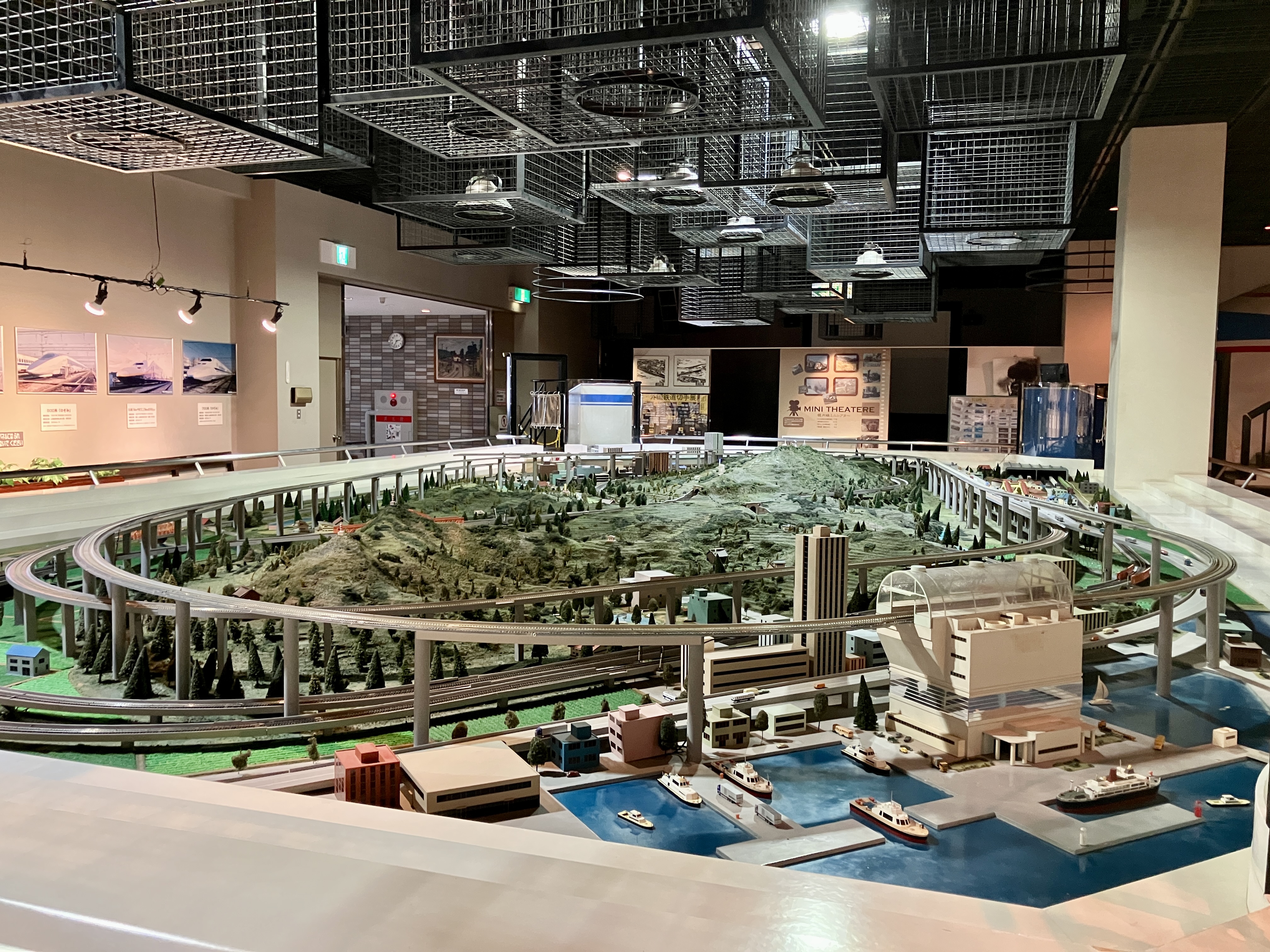 【巨大ジオラマ】館内2階にあるジオラマ。お客さんにも人気です。開館期間はジオラマ内のレールを列車が走るため、レールにゴミなどが溜まっていないか確認する作業も管理業務の一環です。