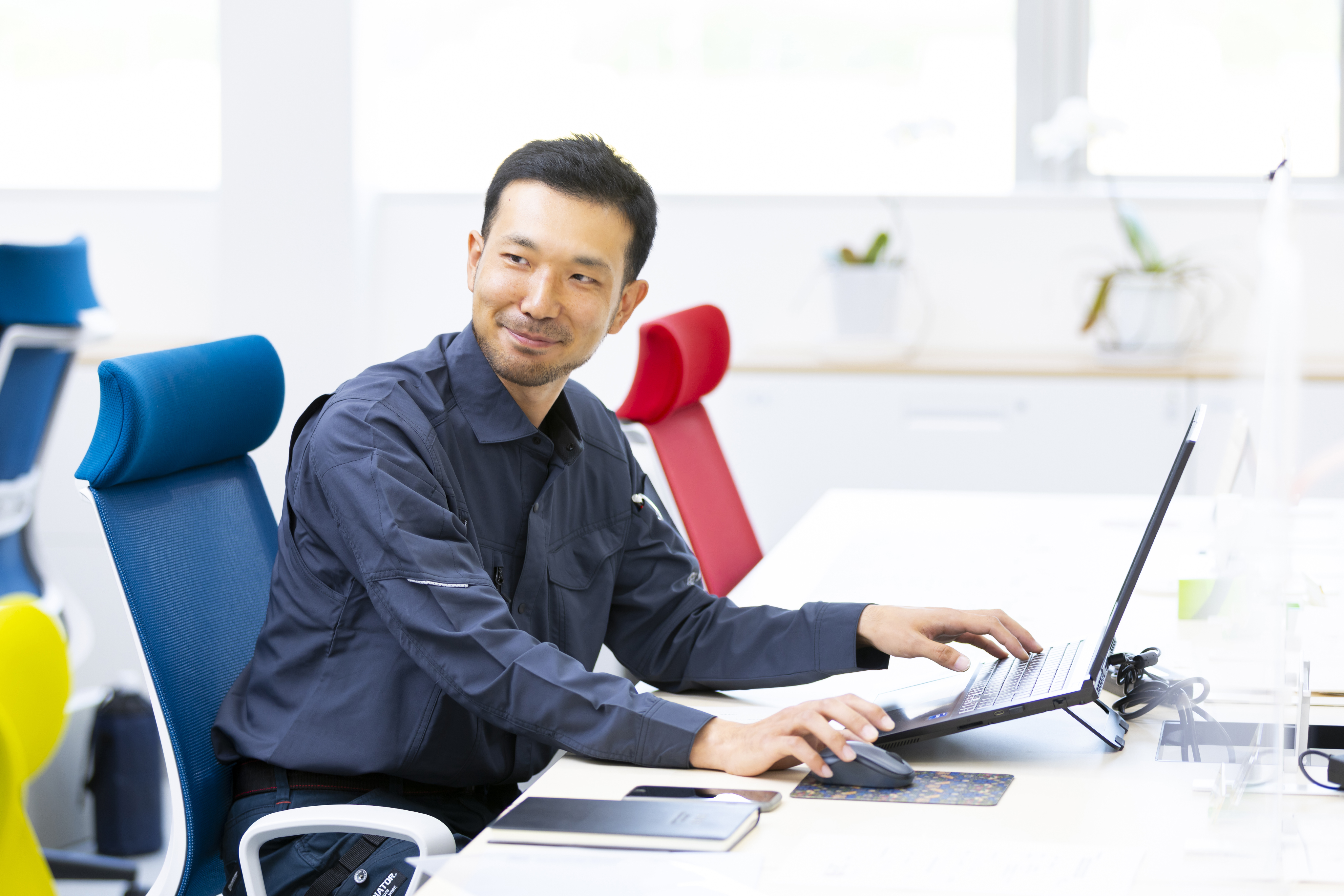 創業70年の伝統に甘んじることなく、フリーアドレスやデジタル化でスマートな施工管理を加速中です。