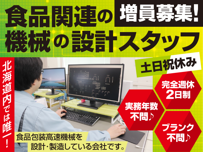 土日祝休みの食品関連機械の図面作成スタッフ