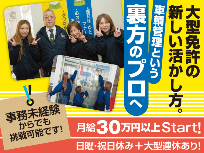 大手グループの安定感のもと、車輌管理として再出発しませんか?