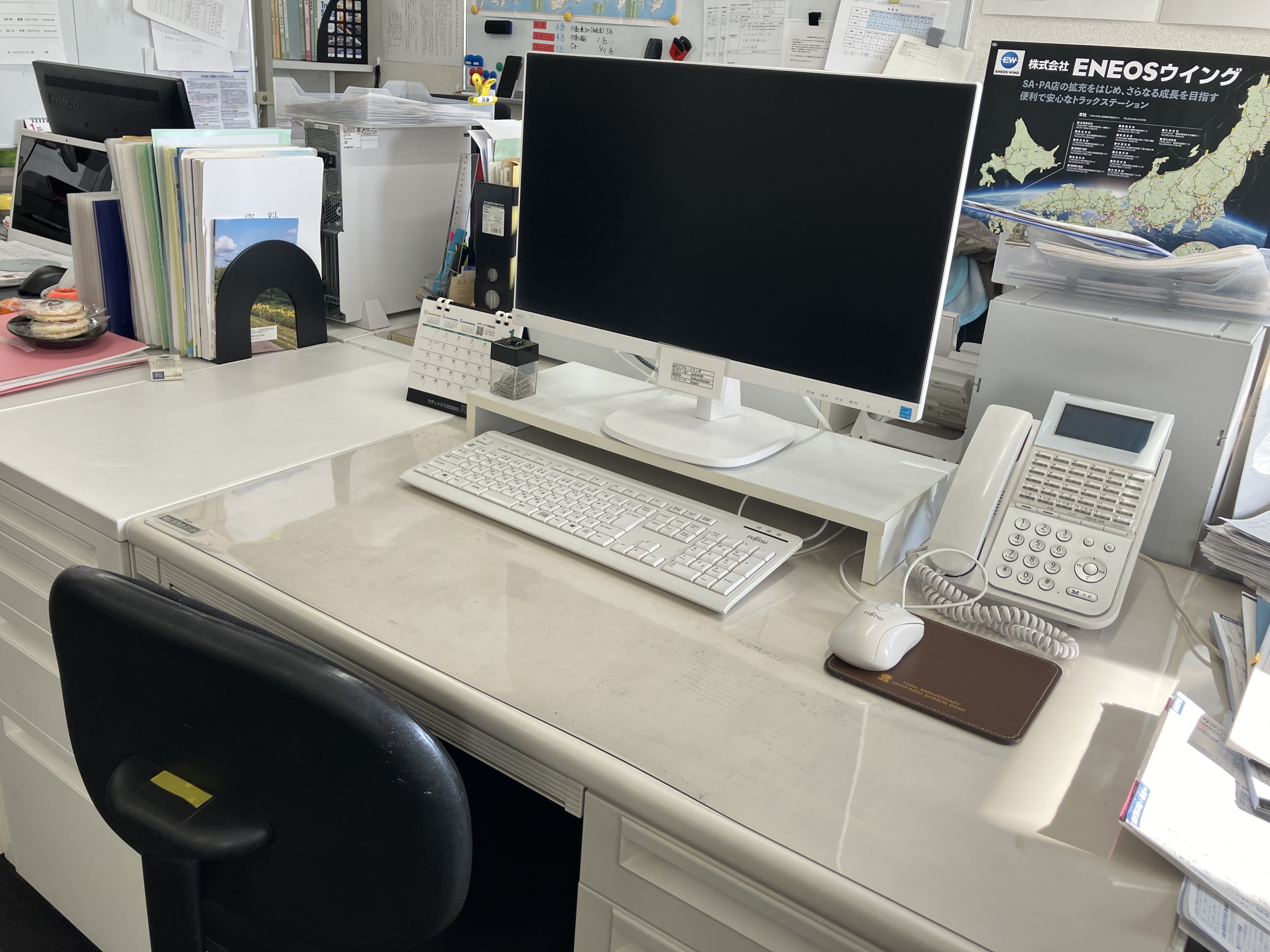 こちらがあなたの席。周りには他の内勤のスタッフもおりますので、何か困った事があったらすぐに聞いて頂ける環境です。スタッフみんなでお待ちしています♪