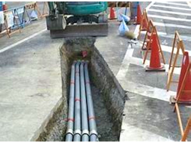 電話やネット回線網を繋ぐ通信ケーブルの地下埋設工事を行う
