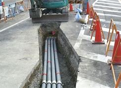 電話やネット回線網を繋ぐ通信ケーブルの地下埋設工事を行う