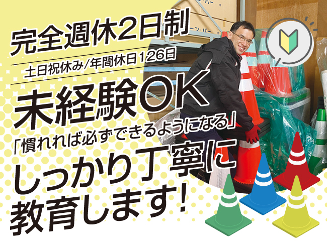 - 自社が開発製造している工事用保安用品(工事用看板、保安灯、フェンス、カラーコーンなど)の倉庫管理を担当していただきます。