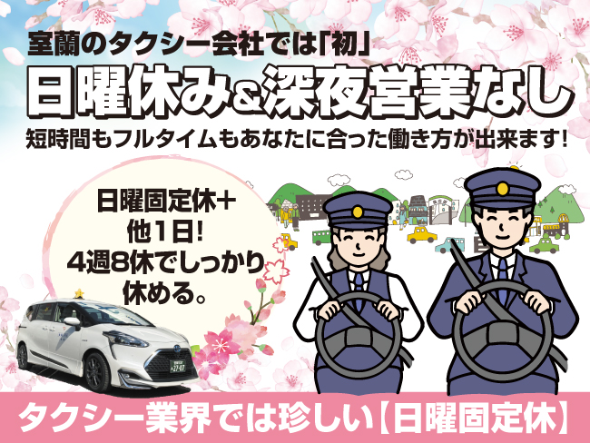 タクシー業界では珍しい【日曜固定休】