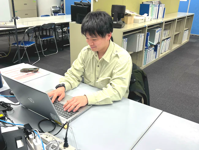 入社後は、公共事業の積算研修やCADのスキルアップ研修を受講いただきます。その後、前職のスキルを考慮し、小さな見積もりの作成など経験に合わせた業務からお任せします。