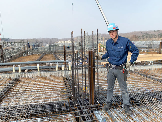 - 鉄筋を組み立ててホテルや病院・商業施設など建築物の骨組みをつくる作業をお願いします。大型物件に携わることが多く、自分の携わった建物がこの先何十年と残り続ける仕事です。