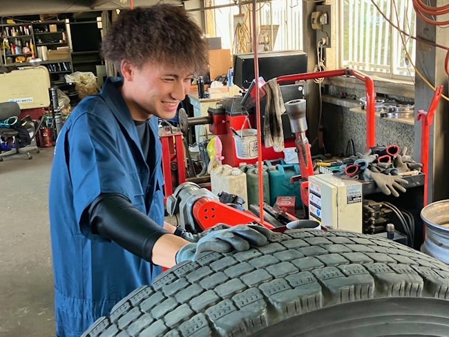 前職は溶接の仕事をしていましたが、車が好きで2年前に当社へ入社。大きなタイヤの取り扱いもありますが、先輩方が丁寧に教えてくださり、半年ほどで一通り習得。最近は仕事の幅も広がり、やりがいを感じています。