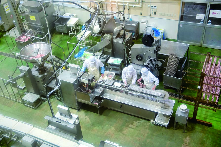 肉処理、配合・充填作業、加熱作業、包装作業、出荷作業