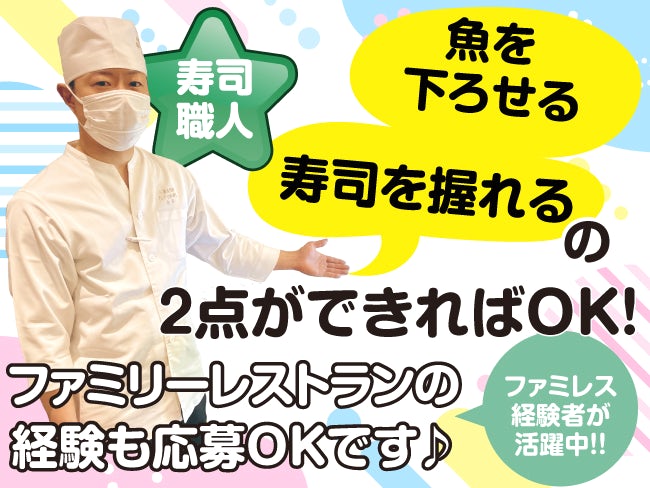 寿司屋経験ではなく、ファミリーレストランでの経験でも応募可能です♪