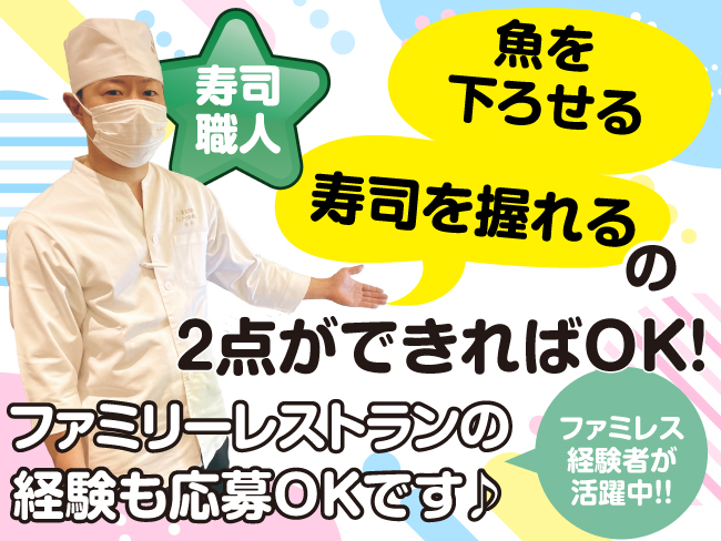 寿司屋経験ではなく、ファミリーレストランでの経験でも応募可能です♪