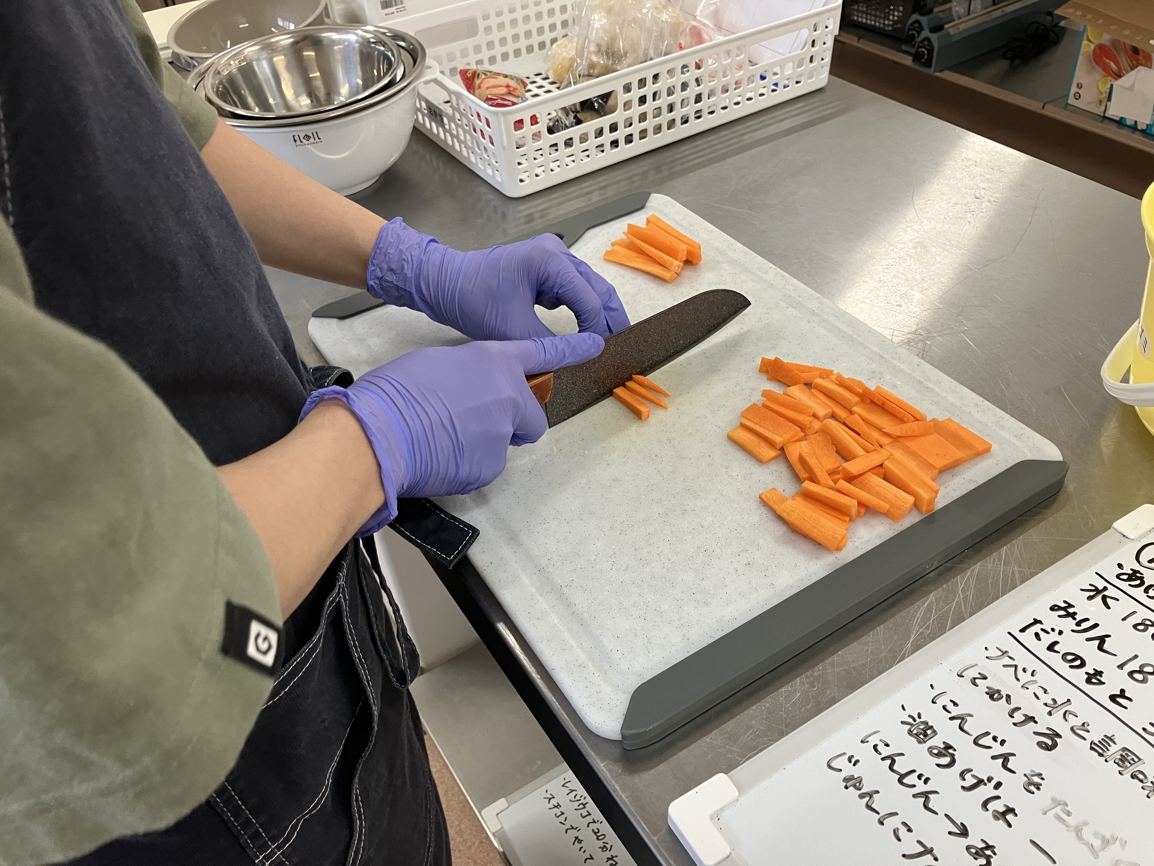 利用者さんが「困っているな」という時にアドバイスや作業方法を教えたり、利用者さんもわかりやすいように調理手順をまとめて書き出したり…。