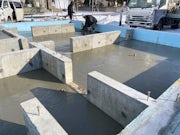 型枠にコンクリートを流し込み、しっかり固まるまで養生(ようじょう)する